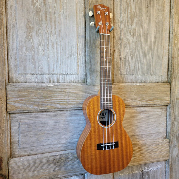 You don't have to drop a lot of money of your first ukulele! The starter packs from Ohana come with everything an ukulele player needs to get started!  It has a tuner, an added button, strap, and bag. All of this at one affordable price. But even at this price point, it will get my personal attention and set up, so the action will be comfortable and ideal so that those learning the ukulele will feel more successful right away!
