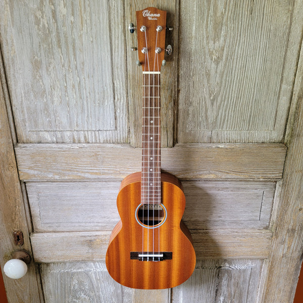 Ohana Tenor Starter Pack TK-10 Laminate Mahogany Ukulele Bag, Tuner, Strap, Button v021