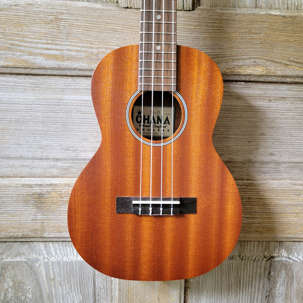 Ohana Tenor Starter Pack TK-10 Laminate Mahogany Ukulele Bag, Tuner, Strap, Button v024