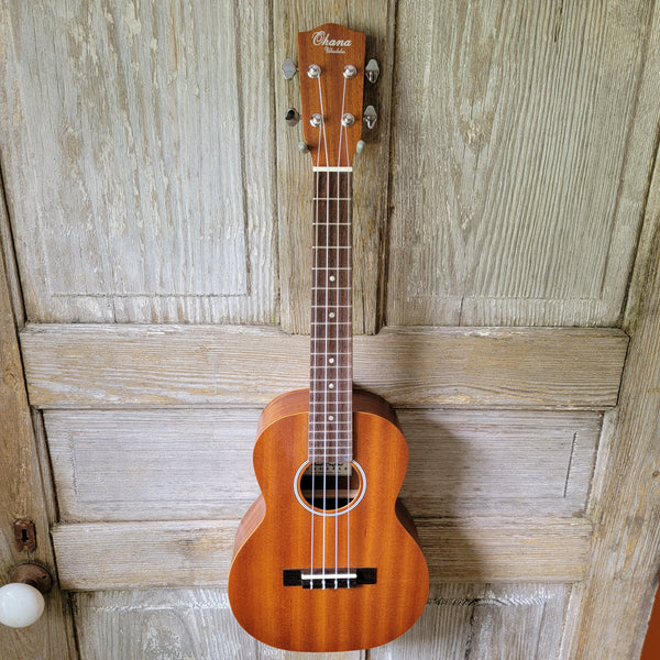 Ohana Tenor Starter Pack TK-10 Laminate Mahogany Ukulele Bag, Tuner, Strap, Button v025